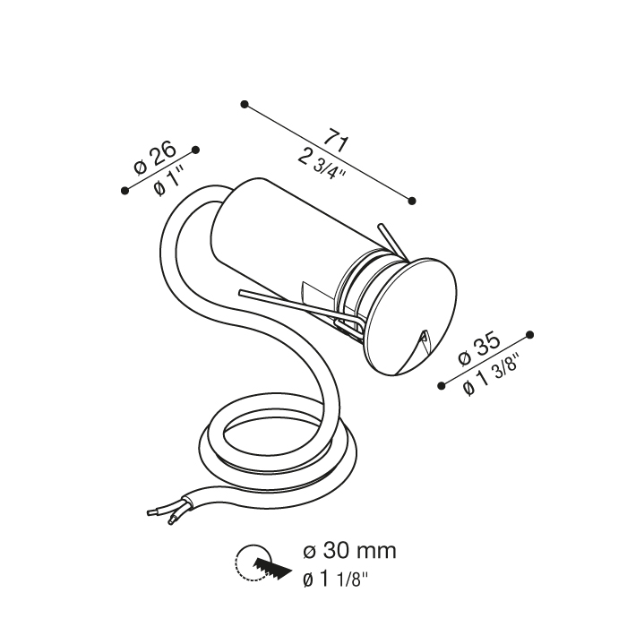 Minimalistisches Downlight für den Einbau. Auch für den Außeneinsatz geeignet. Gehäuse aus Aluminium und/oder AISI316L-Stahl. Große Auswahl an Farbtemperaturen. Transparenter Glasdiffusor. Das Produkt hat die Schutzart IP 67 und ist mit einem integrierten Aquastop ausgestattet, der das Produkt vor dem Eindringen von Wasser und Feuchtigkeit schützt. Vorverkabelte Leuchte mit mehrjähriger Garantie auf den LED-Schaltkreis, geliefert mit Netzkabel H05RN-F 2x0,75. Stromversorgung ausgeschlossen 24Vdc oder 500mA - 6V. Wabenförmige Version verfügbar (nicht mit D-Optik). LED 4000K (N) oder 3000K (3), 2700K (2) oder 2200K (1). Kein photobiologisches Risiko unter normalen Einsatzbedingungen; Risikogruppe RG1 nicht betroffen (EN62471).