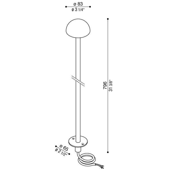 Body and pole in EN-6026 anodised aluminium; high resistance to oxidation thanks to the anodising treatment. Diffuser in optical polycarbonate with PoliGLASS finish, injection moulded.